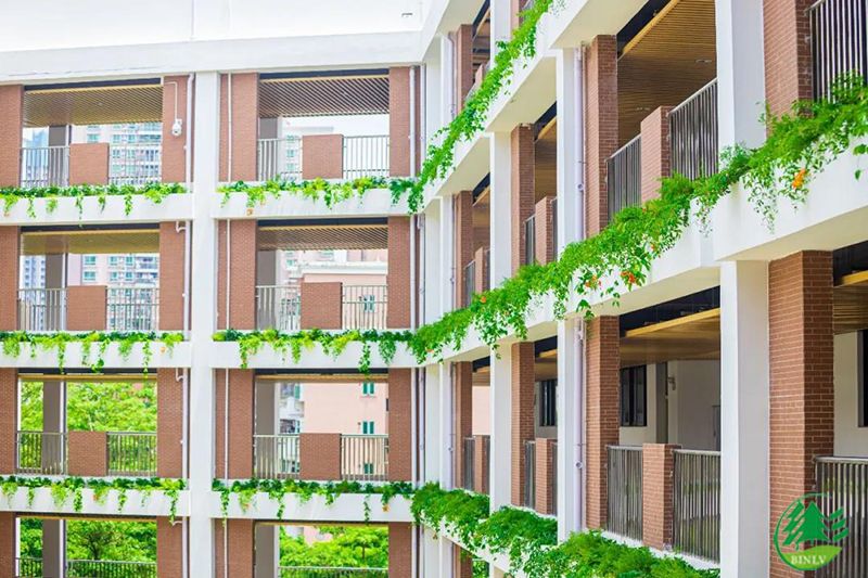 福田外國語學校園林景觀綠化工程,總體規(guī)劃以垂直綠化為主,以規(guī)整的樹木植被與盆栽相結合,構建出富有嶺南特色的現(xiàn)代園林空間,為學生和教師們打造一個良好且富有書香氣息的環(huán)境。